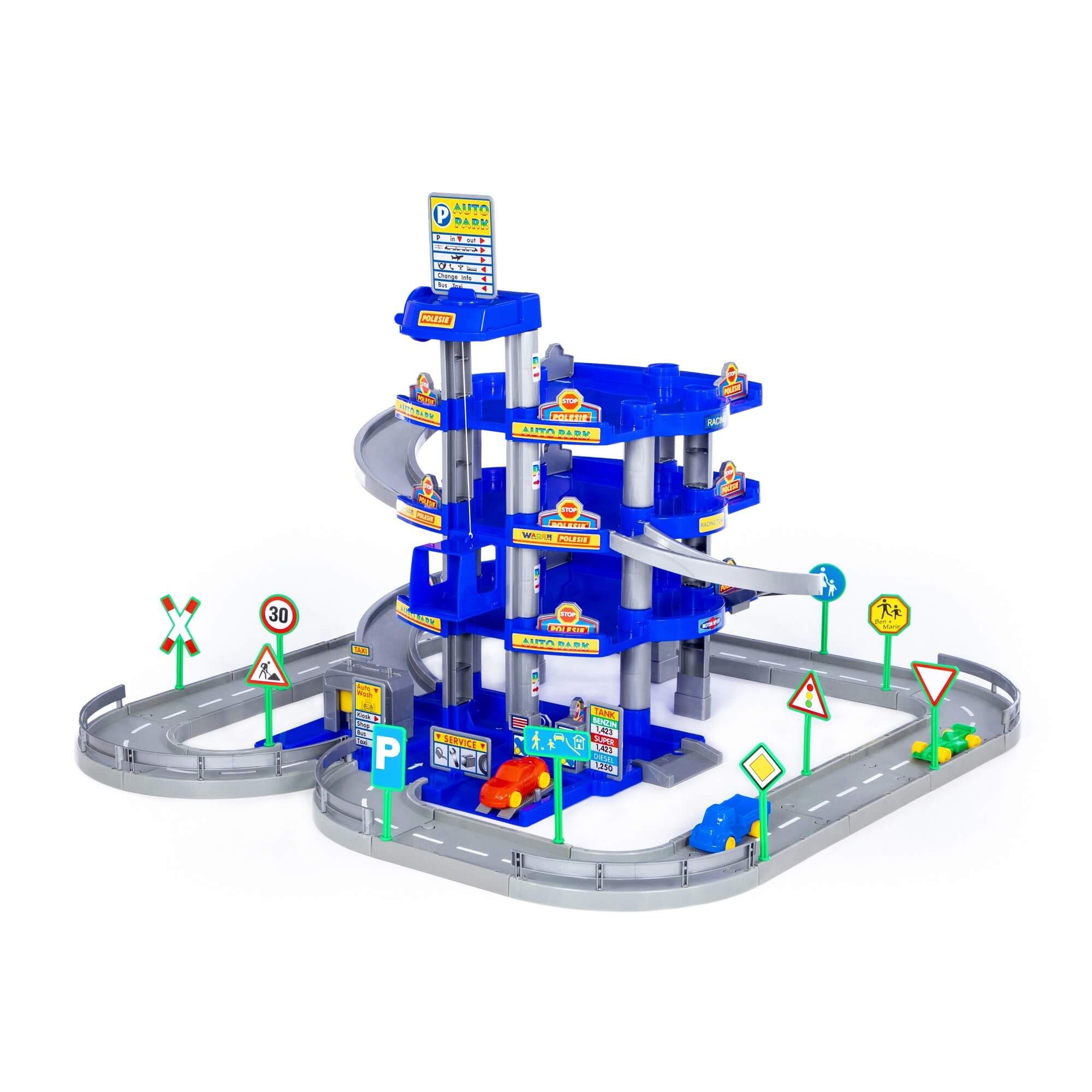 Garage mit 4 Ebenen bietet jede Menge Spielspaß über 4 Ebenen. Mit funktionsfähigen Teilen wie Waschanlage, Tankstelle, Kran . Die Garage hat eine sehr gute Standfestigkeit. - viele Spielmöglichkeiten - Achtung! Nicht für Kinder unter 36 Monate wegen verschluckbarer Kleinteile. ERSTICKUNGSGEFAHR. Alle Verpackungs- und Halterungselemente entfernen, bevor das Spielzeug dem Kind übergeben wird. Die Adresse des Herstellers für eventuelle Schriftverkehr aufbewahren. Farbänderungen vorbehalten.