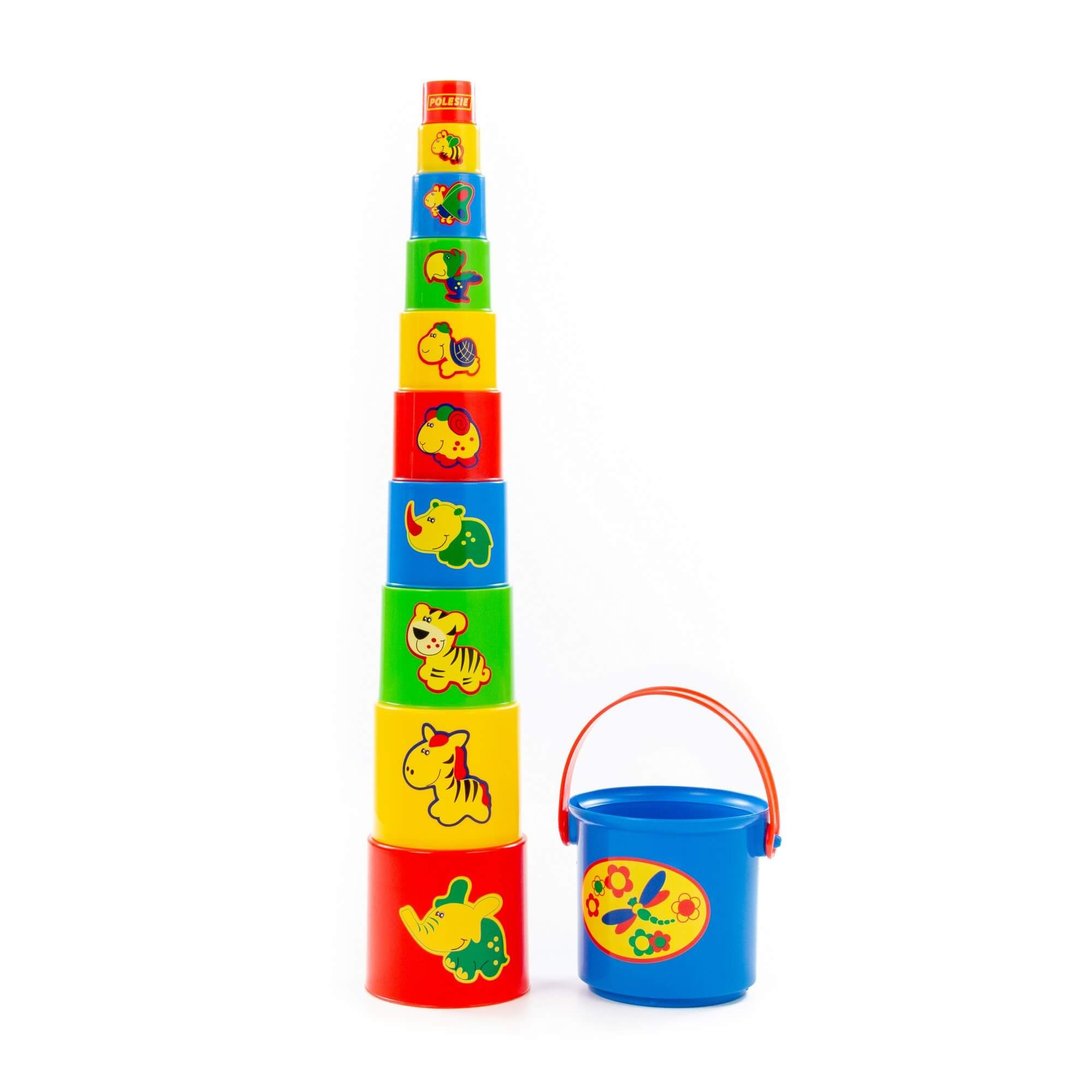 Die bunten und lustigen Becher der Pyramide sind für Kinderhände leicht stapelbar, bis die kleinen Baumeister die Spitze der Pyramide erreichen. Kaum ist die Pyramide aufgebaut, kann sie mit einem Schubs umgekippt werden und der Bauspaß beginnt wieder von Neuem. Ineinander gesteckt können die Becher leicht transportiert und verstaut werden. Die bunten Becher sind mit verschiedenen Motiven bedruckt. Pyramide mit Henkel, 11-teilig. Für Kinder ab 12 Monate. Achtung! Alle Verpackungsmaterialien entfernen. Bitte aufheben für evtl. Schriftverkehr.
